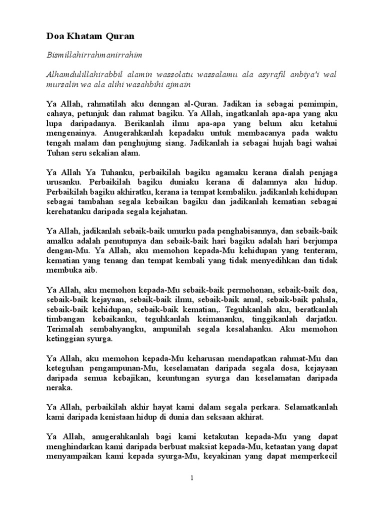 Doc Doa Khatam Alquran Versi Melayu Hanis Zulkofli Academia Edu